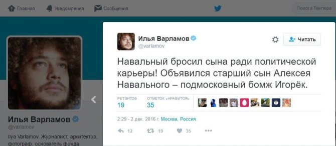 На днях в твиттере самого кучерявого блогера появилось странное сообщение. Илья Варламов распознал в подмосковном бомже Игорьке сына Алексея Навального.