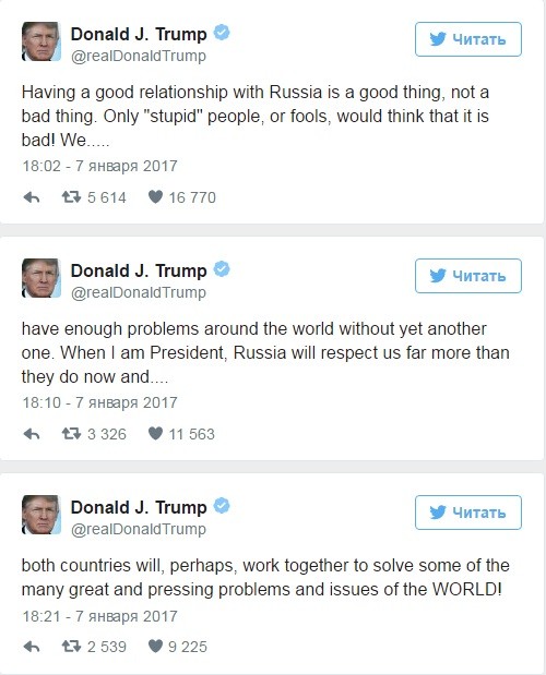 Но сегодня у сторонников Хиллари и Обамы, наверное, подгорает больше. Тут уже даже не о Терминаторе речь, ведь Трамп снова упомянул Россию. Да ещё и в каком контексте!