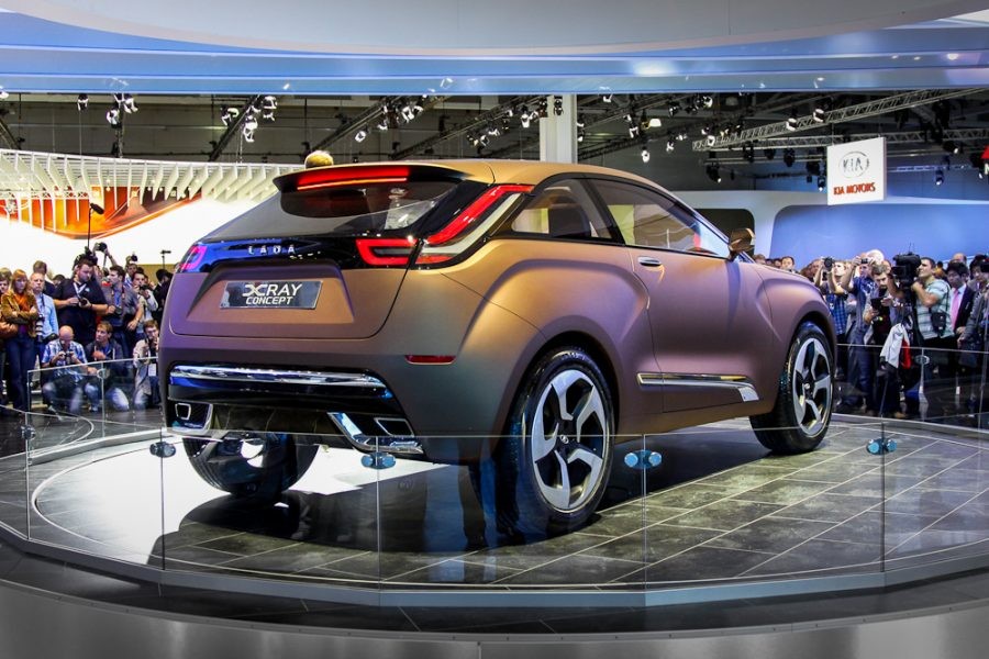 С тыла нарисованная модель будущего внедорожника выполнена в стиле концептуального LADA XCode.