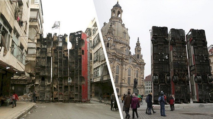 На днях в Дрездене, на площади перед церковью Фрауенкирхе была установлена инсталляция из трёх автобусов, смотрящих фарами вверх. Предполагалось, что арт-проект будет напоминать о разрушенном сирийском городе Алеппо, а также о жертвах войны в Сирии. Однако многие пользователи стали указывать автору инсталляции на один неудобный факт.