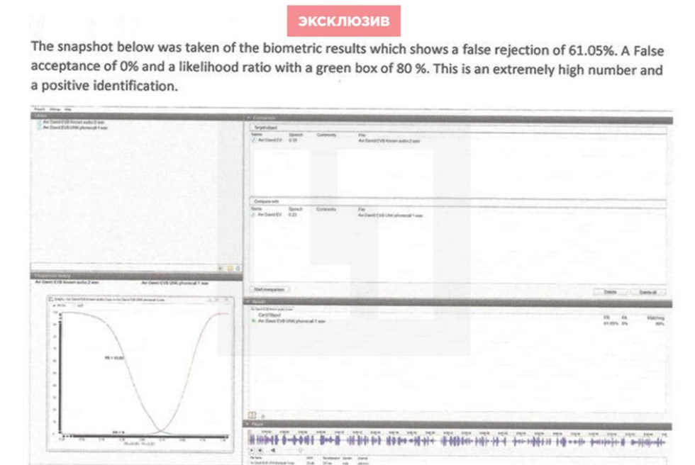 Биометрический анализ выявил совпадение спектрографических, слуховых и тоновых колебаний на уровне 80%.