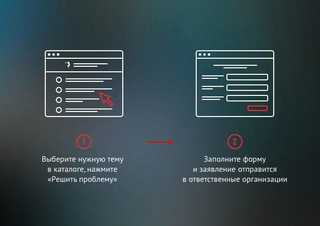 Для того, чтобы начать решение проблемы, нужно лишь зайти на сайт, найти нужную категорию и заполнить форму, сайт автоматически определит ответственный орган власти и отправит обращение. Это удобно и эффективно для граждан, так как не нужно искать ответственного за проблему, нужно лишь рассказать о ней.
