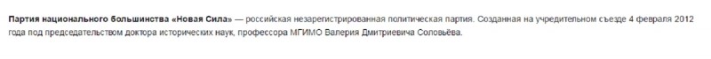 В своё время данную партию завернул Минюст, отказав партии в регистрации из-за чрезмерно агрессивной направленности. Руководители «Новой силы» были участниками и одними из организаторов русского марша 4 ноября 2012 года (около 90 участников партии и были задержаны). Сам Соловей в интервью 2016 года заявлял, что его партия не состоялась по причине угроз репрессий. Классическое заявление. Впрочем, другого от оппозиционера и националиста никто не ожидал.