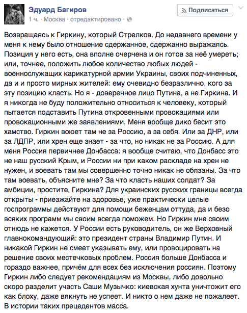 Какие именно провокационные заявления сделал Гиркин, доверенное лицо не сообщило. Просто потому, что нечего. Доверенное лицо дико бесит сам факт того, что с некрологом вышла заминка.