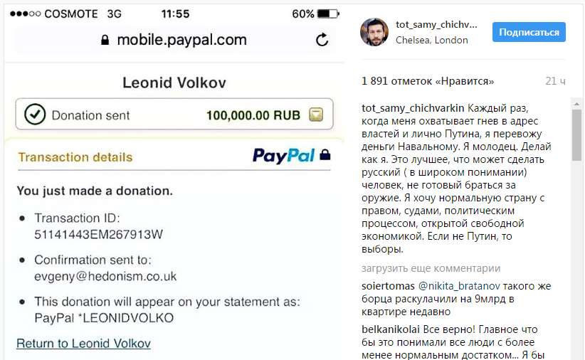 Сделать это несложно — достаточно вспомнить нашумевший пост Евгения Чичваркина, в котором тот кичился, что перевел в пользу Навального аж 100 тысяч рублей.