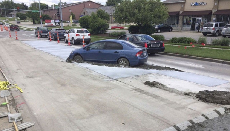 Третье место. Бывало у кого-нибудь из вас такое, что неприятности сыплются на голову как из рога изобилия и одна, пусть даже мелкая, неизбежно влечет за собой другую? Наверняка бывало, и именно поэтому вы, несомненно, проникнитесь сочувствием к простому американскому парню, о котором пойдет наш рассказ. 19-летнему жителю американского города Линкольн, штат Небраска, грозит штраф в размере 10 тысяч долларов за то, что он припарковал свою машину на недостроенной стоянке, залитой жидким бетоном. Представители городской администрации требуют у водителя выплаты десяти тысяч долларов за вызов эвакуатора, очистку улицы от остатков бетона, нанесения нового слоя покрытия и другие повреждения, которые молодой человек принес городу. Я бы, несомненно, счел подобные требования законными, если бы перед въездом на стоянку стоял знак, информирующий водителей о проведении ремонтных работ. Но, увы, знака не было, и парень был уверен в том, что паркуется на обычное покрытие. Однако, несмотря на это, городская администрация планирует повесить на водителя все убытки, причинённые городу его автомобилем. Искренне надеюсь, что судьи проявят благоразумие, и «повесят» на администрацию не только расходы, связанные с данным инцидентом, но и расходы по ремонту машины, которая попала в бетонный плен, вызволяли из которого ее целых четыре часа.