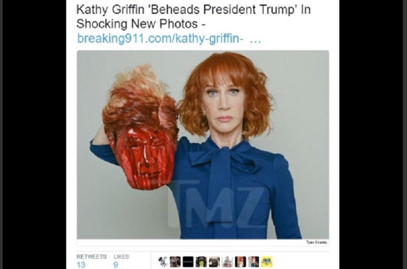 Второе место. Американская актриса и бывшая ведущая на телеканале CNN Кэти Гриффин, опубликовавшая фотографию, на которой она держит за волосы муляж отрезанной головы президента США Дональда Трампа, заявила, что в скандале и её увольнении с канала виноваты семья Трампа и сексисты. Стоит отметить, что причиной ее увольнения действительно явилось описанное выше деяние, в результате которого она имитировала «обезглавливание Трампа». Удивительные люди. Неужели сложно признать, что причиной всех бед, свалившихся на твою голову являешься именно ты, а не Дональд Трамп, который отреагировал на подобную выходку именно так, как на нее отреагировал бы любой нормальный человек? В данном случае вопрос даже не в политических убеждениях и предпочтениях, а непосредственно в адекватности Кэти Гриффин. Если ее карьера после описанной выше выходки завершится – это будет более чем справедливо.