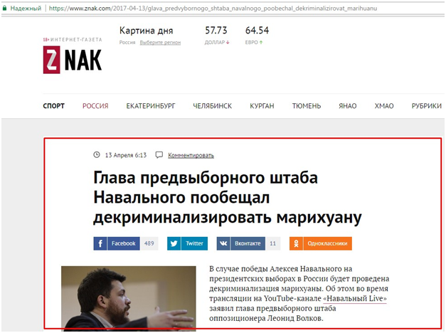 Отметим, что Навальный пиарится на теме наркотиков при каждом удобном случае. А глава предвыборного штаба Алексея — Леонид Волков уже пообещал избирателям декриминализировать марихуану в случае победы Навального на выборах.