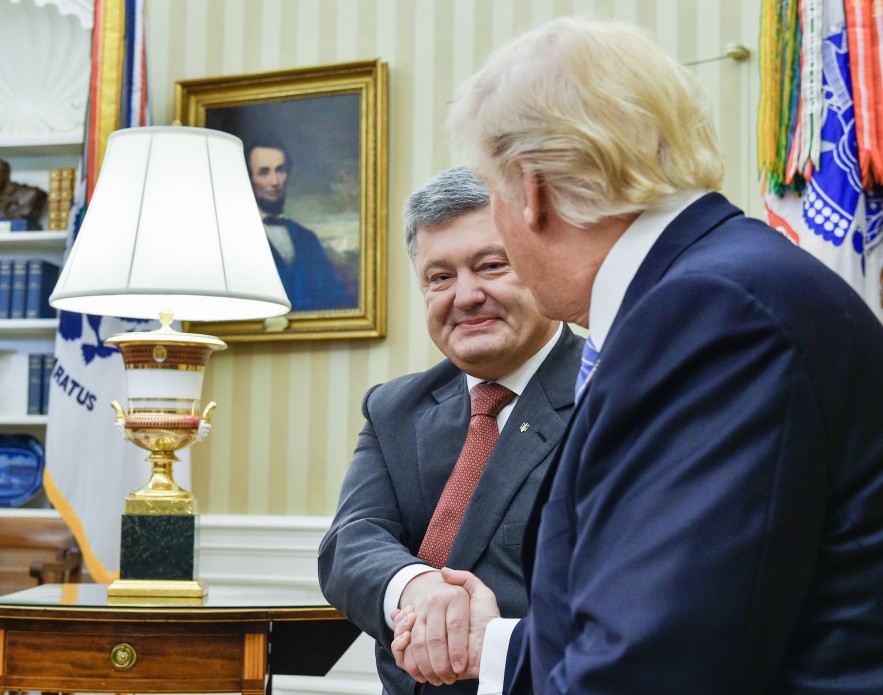 Президент Трамп: Спасибо вам большое. Для меня большая честь встретиться с президентом Порошенко, президентом Украины, страны, в дела которой мы все глубоко вовлечены. И вы это видите, и все читают об этом.