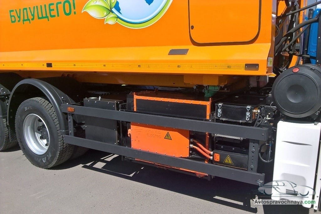 Создание уникального гибрида на базе мусоровоза объясняется тем, что вывоз мусора обычно осуществляют в утреннее время. Именно поэтому важнейшая характеристика самосвала — низкий уровень шума. Помимо этого, при езде на электротяге в жилых кварталах КамАЗ не будет выбрасывать никаких вредных веществ и отработанных газов.
