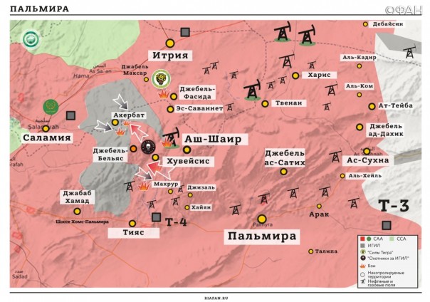 Также следует отметить активную поддержку спецназа САА со стороны ВКС РФ. Именно российская авиация успешно пресекает любые попытки ИГ* покинуть Акербат. Регулярная ликвидация «убегающих боевиков» осуществляется для того, чтобы террористы не смогли сбежать в Дейр эз-Зор, тем самым оказав поддержку своим союзникам.