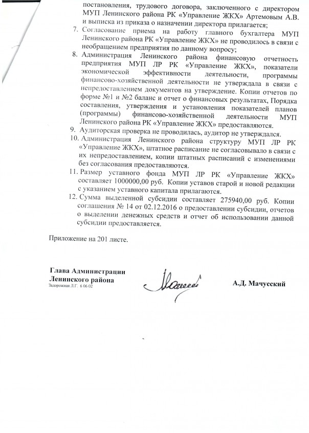 При этом глава Ленинского районного совета Алексей Новиков не принял никаких мер для того, чтобы прекратить деятельность МУП и возвратить средства в бюджет.