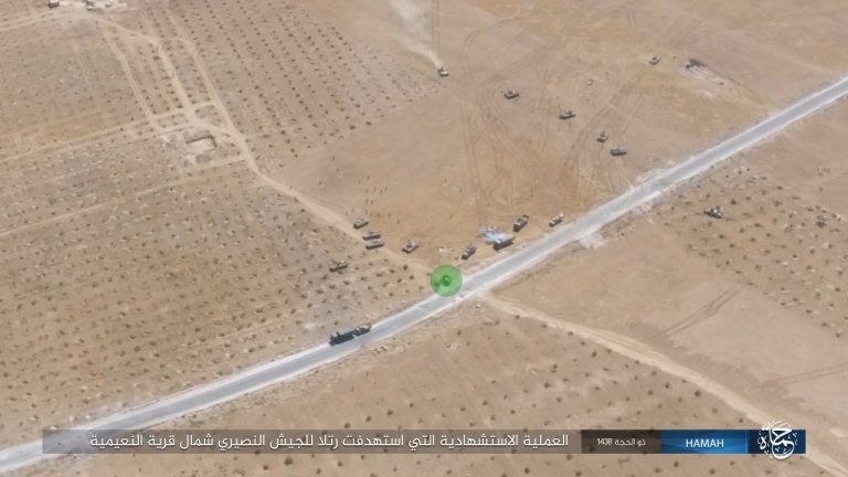 Зачастую такие атаки правительственным силам удается предотвратить, однако иногда «смертельное оружие» террористов все-таки достигает своей цели. Так, после триумфа в Акербате в скопление военной техники САА, расположившейся неподалеку от города, въехал смертник. Военные не смогли остановить террориста. Внезапно появившийся автомобиль на большой скорости влетел в бронетехнику, подняв серо-черный «гриб» высотой несколько десятков метров.«Шахид-мобили» — один из самых страшных способов ведения боевых действий, поскольку несущийся на высокой скорости и маневрирующий джип или грузовик, плотно зашитый сантиметровыми стальными листами, невероятно сложно остановить. Необходим ювелирный выстрел. В некоторых случаях в роли «самоходной бомбы» используются БТРы и даже танки, что еще сильнее осложняет задачу. К примеру, во время боев за Мосул больше половины погибших солдат коалиции стали жертвами так называемых «шахид-мобилей».