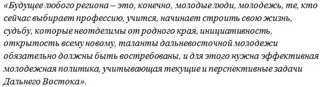 Как отметил президент России, одно из приоритетных направлений страны — развитие молодежной политики на Дальнем Востоке.