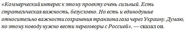 По словам главы Еврокомиссии, коммерческий интерес к проекту «Северный поток-2» достаточно сильный. Более того, отмечается его стратегическая важность. Однако есть и «единодушие» касательно важности сохранения транспортировки газа через Украину. Впрочем, по мнению Шефровича, данный вопрос уже нужно обсудить с Россией.