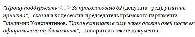 Стало известно, что Госсоветом республики Крым был принят закон о списании кредитных задолженностей перед банками Украины. Об этом передает ТАСС.