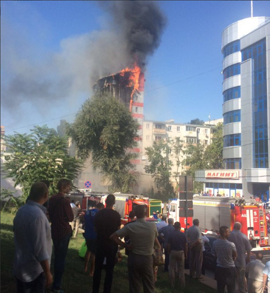 В Ростове 10-этажное здание полностью охватило пламенем, очевидцы сообщают о выпрыгивающих людях