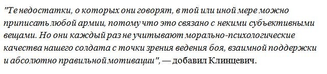 Сенатор считает, что приведенный «анализ» слабых сторон армии РФ является субъективным. По мнению сенатора, посредством выпуска подобных учебных книг американские военные не учли российских реалий, а также менталитет страны. Недостатки, о которых военные США говорят в книге, в определенной степени можно отнести к любой армии.