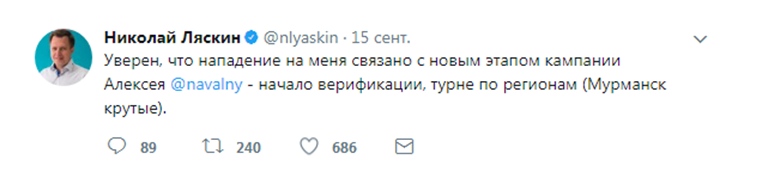 Навальный с его сторонниками не спешат озвучивать собственную версию происшедшего, традиционно обвиняя во всём Кремль. Не успел Ляскин выхватить трубой по голове, как уже спустя считанные минуты Леонид Волков разразился умозаключениями в Twitter:
