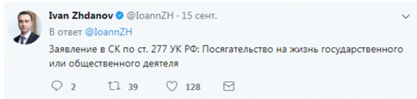 ФБК принялись «держать марку» всей конторой, так что юрист Фонда Иван Жданов заявил, что намерен подать заявление о «посягательстве на жизнь государственного или общественного деятеля», пытаясь преподнести событие как покушение, чем, в общем-то, даже не пахло.