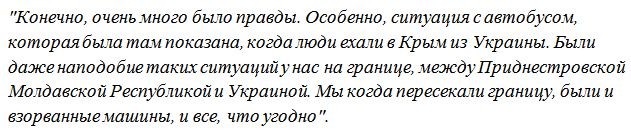 Так, по мнению украинки посмотревший фильм, картина была снята достаточно реалистично. Отдельного внимания заслужили сцены на Майдане, а также эпизод с нападением на автобус, ехавший на территорию Крыма из Украины.