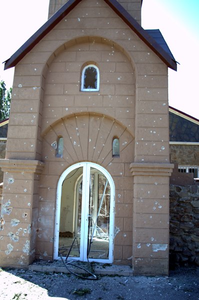 В результате попадания снаряда частично пострадал храм святого великомученика Пантелеимона, находящийся на территории 2-й горбольницы. По сообщению настоятеля больничного храма протоиерея Давида Соломонишвили, снаряд упал возле трамвайных путей по улице Гагарина, рядом с храмом. Частично повреждён фасад храма со стороны алтарной части и каменная церковная ограда, в храме выбиты стёкла. Взрывной волной выбило двери колокольни. Один из осколков снаряда попал в алтарь. К счастью, обошлось без человеческих жертв.