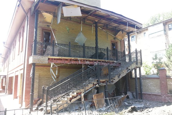 В епархиальном управлении повреждены наружная лестница и фасад двухэтажного корпуса, в ряде помещений выбиты стёкла, смята ограда газона. Также повреждена проходящая по территории газовая труба. Повреждены снарядами и осколками и соседние пятиэтажные дома, один из них загорелся.