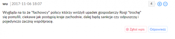 Примечательно, что в комментариях к статье польские пользователи вспоминают о том, что ранее местные аналитики уже прогнозировали частичный спад российской экономики (а некоторые говорили и о полном крахе) в связи с санкциями. Чего, как показывает положительная динамика сегодняшнего дня, не произошло.