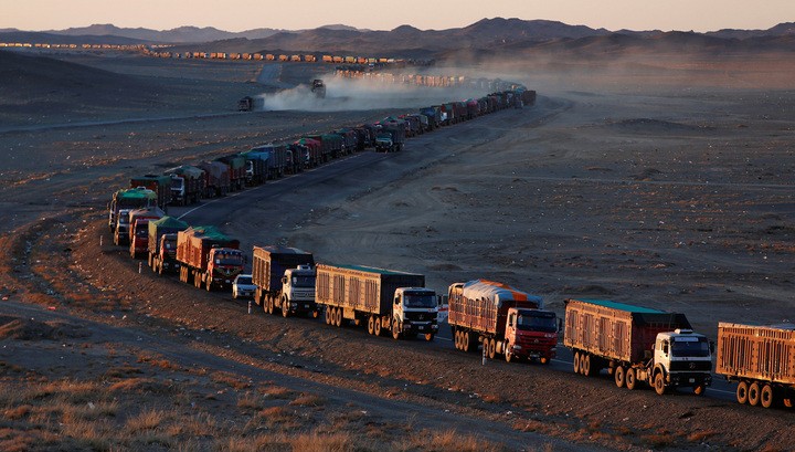 Тысячи гружёных углем фур образовали 130-километровую пробку в монгольской пустыне Гоби, на границе с Китаем. Километровые очереди вызваны ажиотажем вокруг трансграничной торговли.
