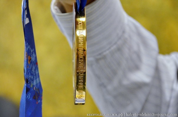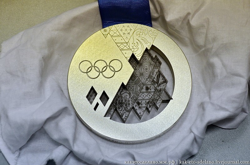 Для Олимпиады в Сочи в 2014 году было изготовлено 1300 медалей. Толщина каждой медали составляла 1 см, диаметр — 10 см. Вес каждой медали составлял от 460 до 531 г в зависимости от достоинства награды. Вес каждой золотой медали был 460 граммов. Они были сделаны из серебра. На их позолоту было использовано 3 кг золота 999-й пробы.