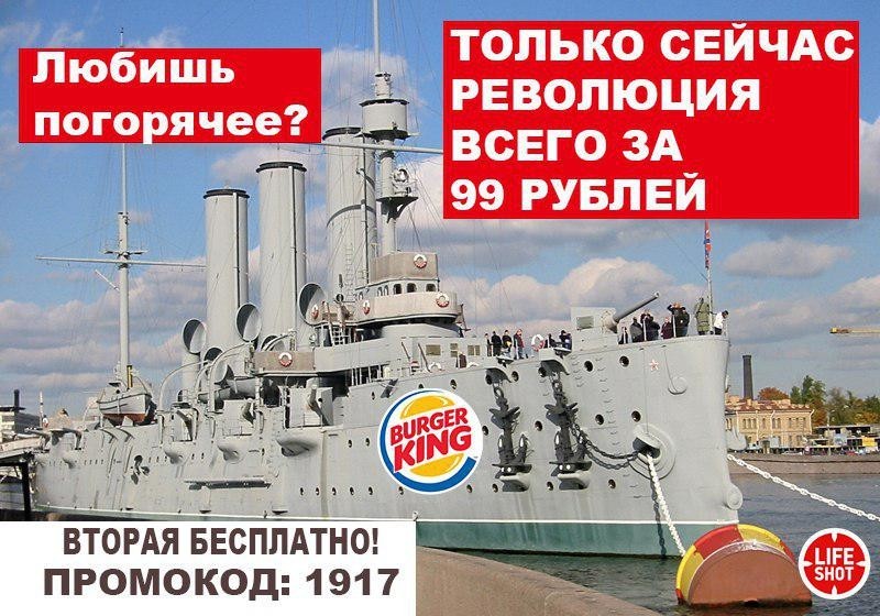 Корпорация "Бургер кинг" обратилась в Центральный военно-морской музей, на балансе которого находится крейсер "Аврора", с предложением продать судно за 50 миллионов рублей, сообщает телеграм-канал Life Shot.