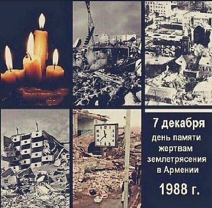 7 декабря 1988 года в 11.41 в Армении произошло землетрясение, в результате которого был почти полностью разрушен город Спитак и 58 сел. За 37 секунд были разрушены и ближайшие города: Ленинакан (ныне Гюмри), Степанаван, Кировакан (ныне Ванадзор) и более 300 других населенных пунктов. Сильные толчки ощущались даже в Ереване. Сила землетрясения в эпицентре, который находился в селе Налбанд, составляла 11,5 баллов по шкале Рихтера.