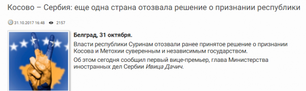 Не все плохо и на международной арене. Сначала в 2011 году две страны - Оман и Гвинея Бисау отозвали решение о признании независимости Косово, а в этом году и республика Суринам к ним присоединилась.