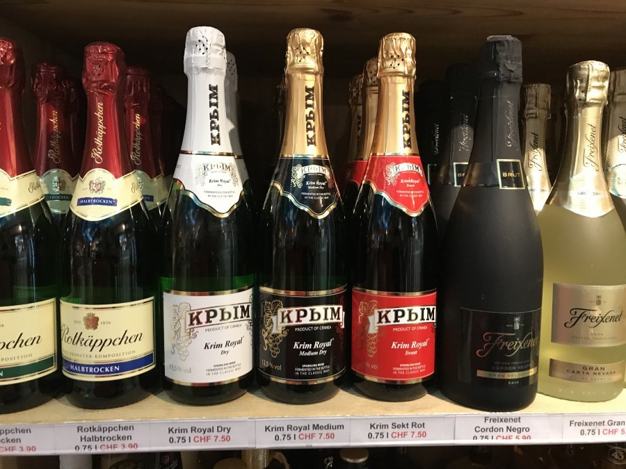 Не будут же они читать маленькие буквы информации на этикетке сзади о производителе «Krim sparkling wine from the Ukraine», а прочтут на передней большими буквами «Product of Crimea». То есть понятия не имеют, что покупают совсем не заявленную на этикетке продукцию Крыма. И не только швейцарцы, а жители многих стран, где продается это игристое вино.