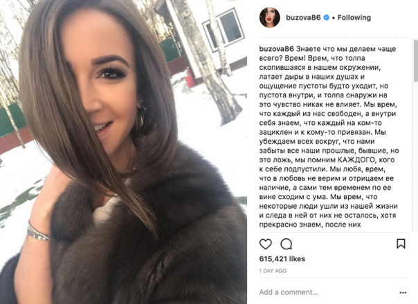 Третье место. Певицу и ведущую Ольгу Бузову поймали на краже поста, который некоторые пользователи назвали самым умным и проникновенным среди её записей в "инстаграме". В частности, на оригинал поста указал совладелец компании "Регистратор доменных имен РЕГ.РУ" Филипп Гросс. Ничего удивительного. Точнее удивительно то, что кто-то решил, что Бузова способна самостоятельно написать нечто подобное. Нет, сам по себе пост не гениален, но он полон словесных оборотов, которые напрочь отсутствуют в лексиконе «самой популярной певицы». Вот о чем я подумал. Учитывая то, что Бузова, как и другие российские «звезды», активно использует инстаграм для заработка финансовых средств, было бы неплохо, если бы автор данной публикации, позаимствованной «певицей» подал бы исковое заявление в суд, которое подразумевает том числе и выплату финансовой компенсации за нарушение авторских прав.