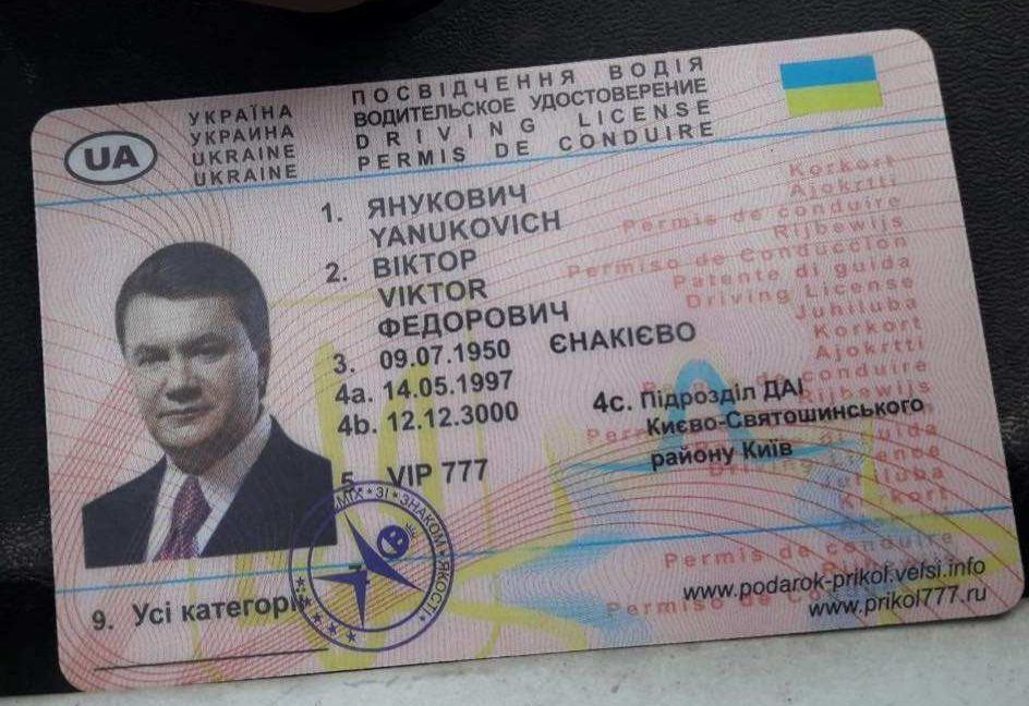 В Харькове 10 января сотрудники патрульной полиции остановили BMW, водитель которого предъявил пластиковую карточку с «правами» на имя беглого экс-президента Виктора Януковича.