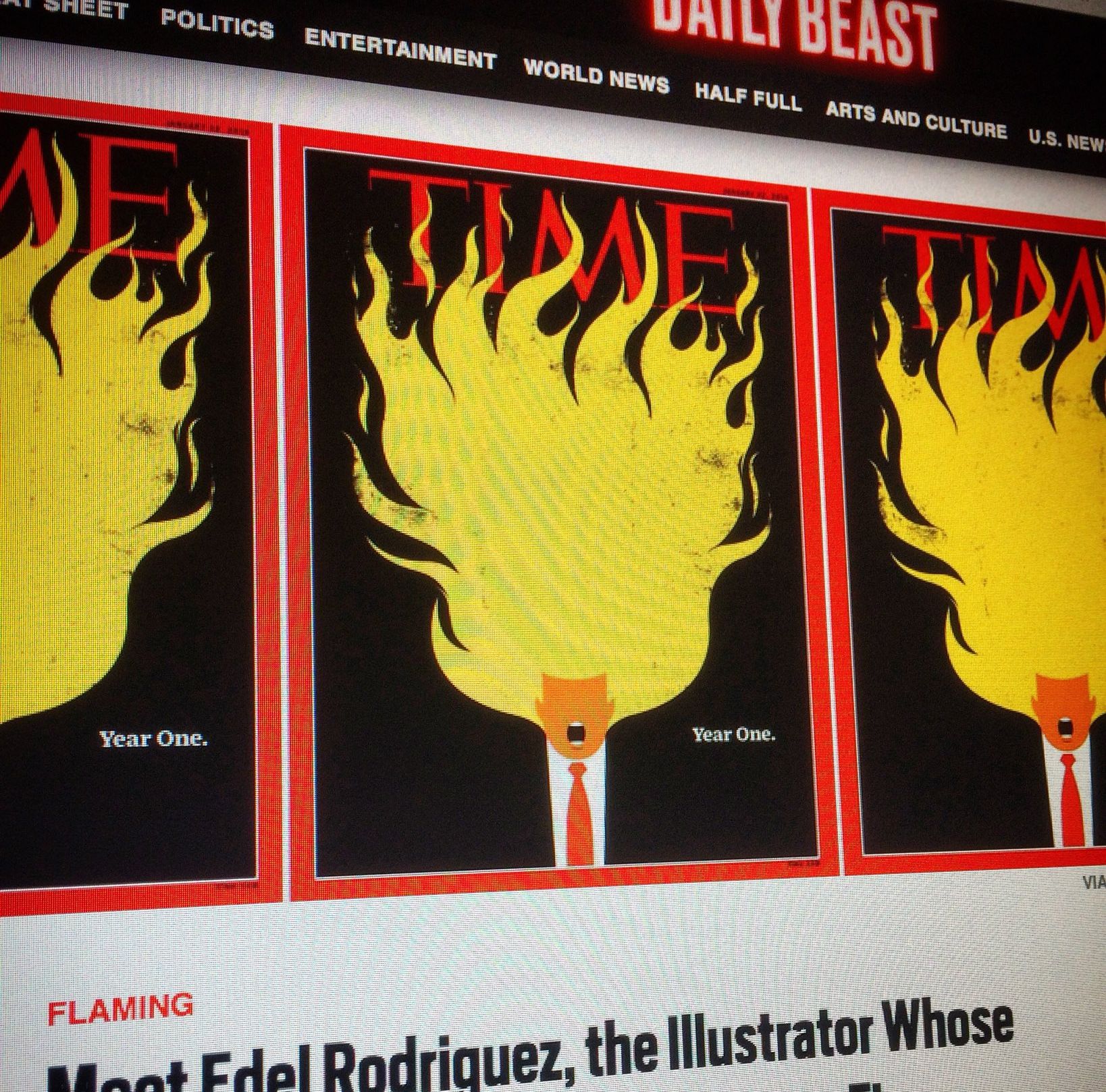 Автором обложки еженедельника является иллюстратор Эдель Родригез, который ранее неоднократно изображал Дональда Трампа на страницах прессы.