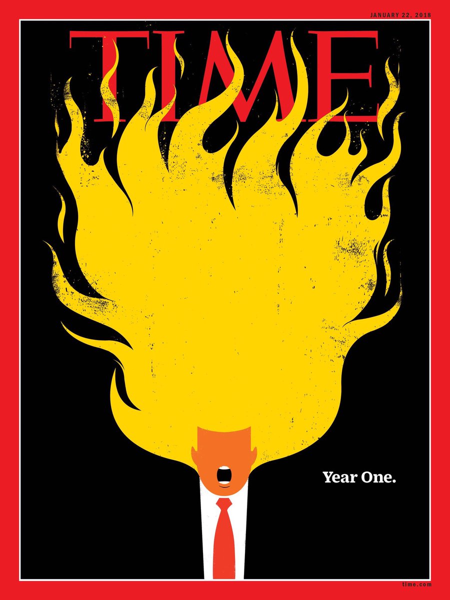 Американский еженедельный журнал Time превратил президента США Дональда Трампа в "зажигалку" на обложке номера от 22 января 2018 года, посвящённого году его пребывания в Белом доме.