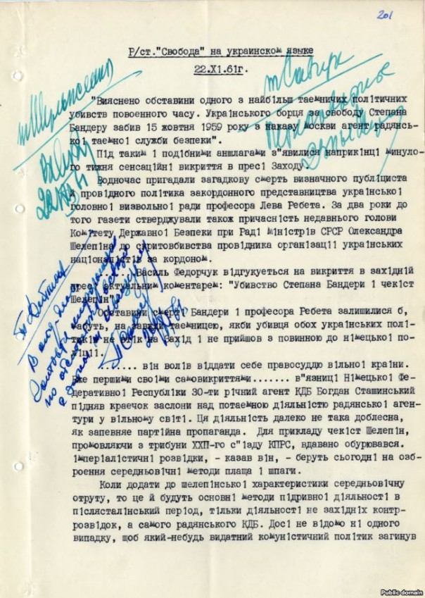 Среди прочего, эти тома содержат распечатки радиопрограмм Радіо Свобода и «Голоса Америки», где говорится об убийстве Бандеры и агенте КГБ (с 1954 года Министерство госбезопасности СССР назвали комитетом ‒ РС) Сташинском.