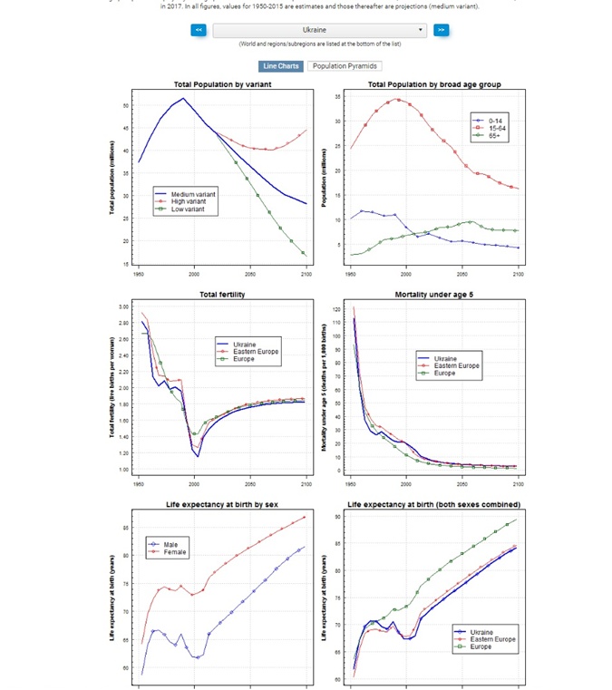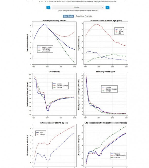 Ранее украинские ученые озвучивали прогноз, согласно которому численность населения Украины к 2050 году уменьшится на 5,5 млн человек. Источник