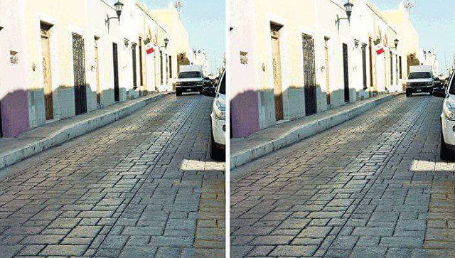 Посетители портала Reddit разошлись во мнениях относительно оптической иллюзии, возникающей при совмещении двух фотографий одной и той же улицы.