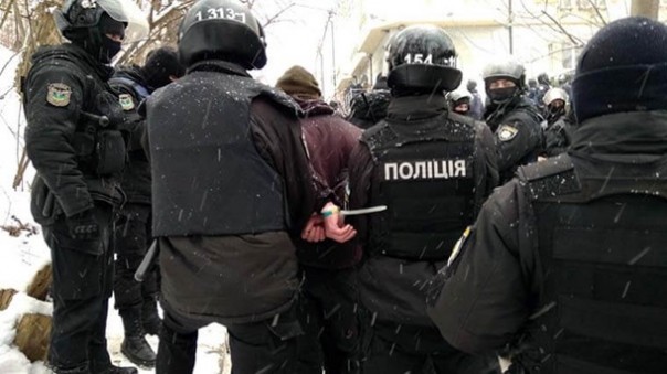Из здания суда начали выходить неизвестные, которые вступили в конфликт с националистами. Им пыталась помешать полиция, после чего и последовали задержания. Боевики батальона «Донбасс» начали драку с правоохранителями с требованием отдать их представителей. Прозвучали два хлопка.