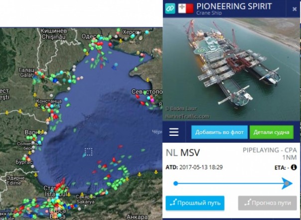 Таким образом, 76% работ по первой магистрали уже выполнили. По данным навигационного портала Marinetraffic, трубоукладочное судно Pioneering spirit находилось еще 2 марта в 226 км от берега и шло со скоростью около 5 км в сутки.