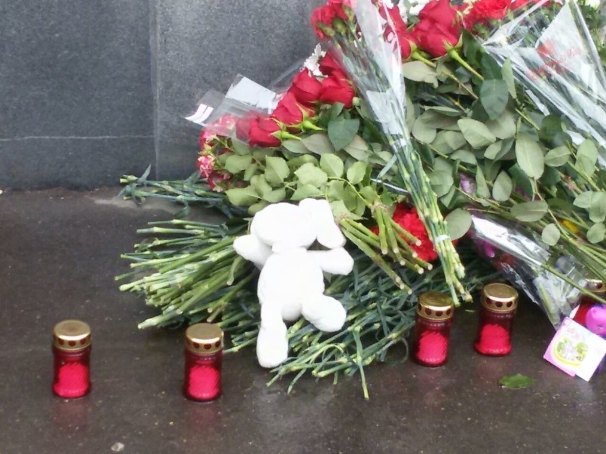 Помимо цветов люди приносят мягкие игрушки и письма с пожеланиями о скорейшем выздоровлении пострадавшим.