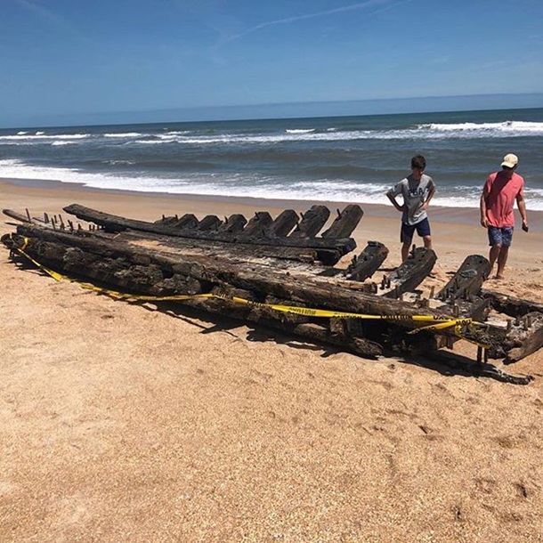 В американском штате Флорида на пляж курорта Понте-Ведра-Бич из океана вынесло на берег 15-метровый фрагмент корабля XVIII века, сообщает CBS47.