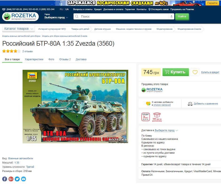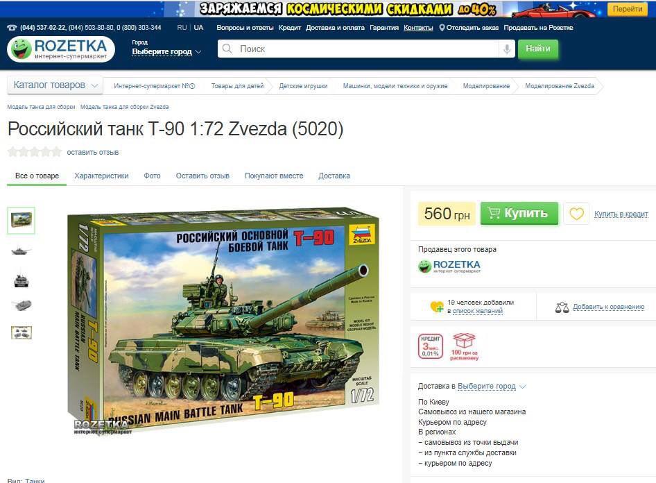 Бывший боевик «АТО» Роман Годунко заставил популярный украинский интернет-магазин «Розетка» убрать из своего ассортимента модели российской военной техники.