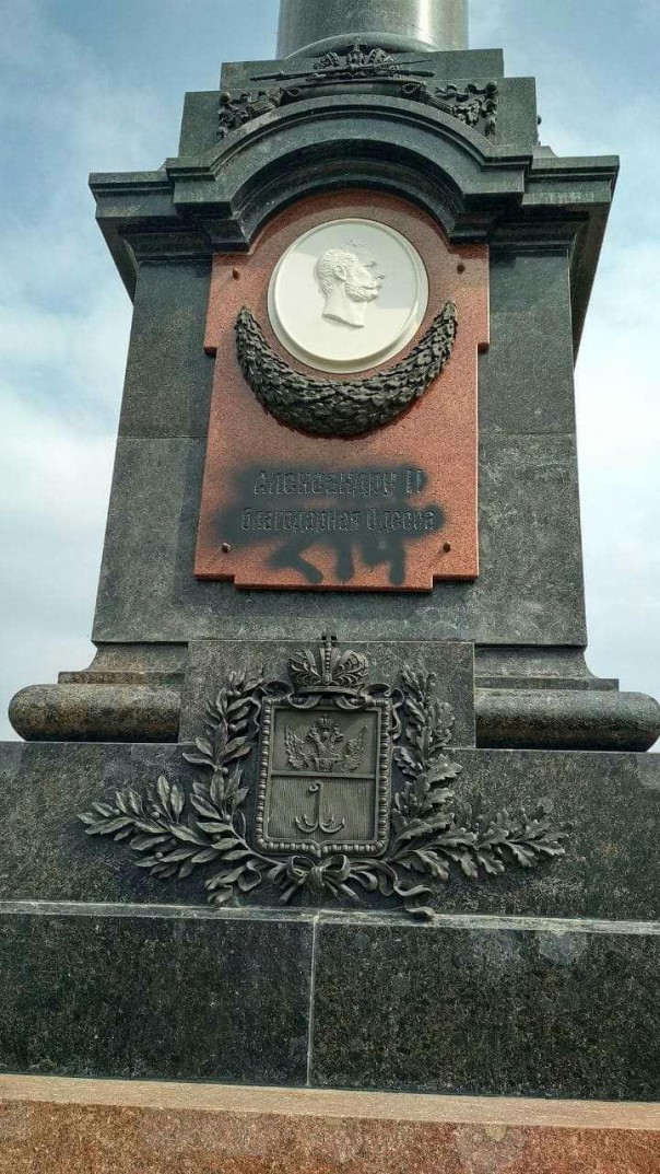 Украинские нацики изгадили памятник российскому царю в Одессе