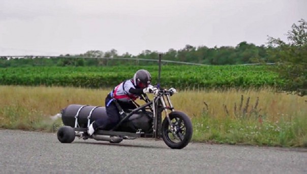 Третье место. Французский велогонщик-экстремал Франсуа Жисси разбился при подготовке к новому мировому рекорду скорости, сообщает газета L'Alsace. Инцидент произошел в коммуне Мюншуз в департаменте Верхний Рейн на северо-востоке Франции. Жисси не справился с управлением во время испытаний реактивного велосипеда собственной конструкции, который должен был разгоняться до 400 километров в час. Напомню, ранее именно Жисси установил мировой рекорд скорости на велосипеде, который составил 333 километра в час. Посмотрел я фотографию того, что покойный Жисси считал велосипедом. Ничего общего данное приспособление с велосипедом не имеет. За исключением переднего колеса и рулевой вилки. Жалко конечно данного отчаянного гонщика, но вряд ли он занимался действительно стоящим делом. Велосипед, это устройство, приводимое в движение при помощи педального привода, а уж ни как не при помощи реактивного двигателя.
