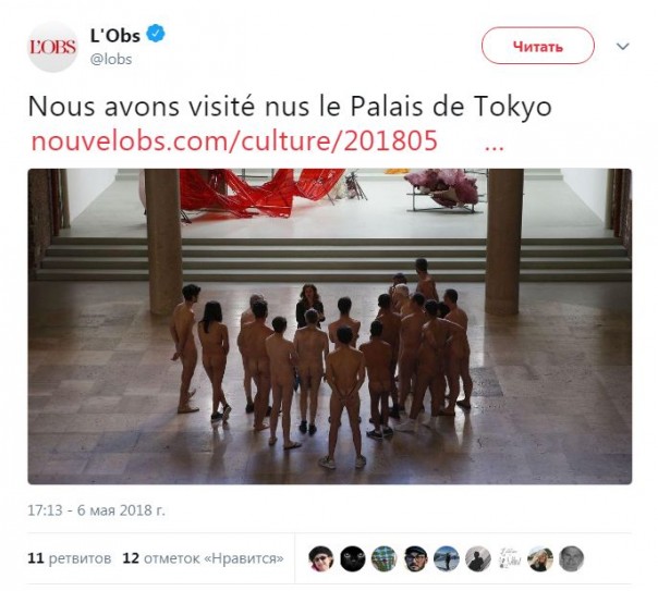 В Париже в музее Palais de Tokyo открылась первая выставка для гостей-нудистов. Об этом пишет The Daily Mail.