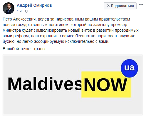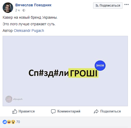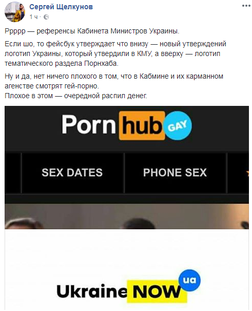 "Если шо, то фейсбук утверждает что внизу — новый утверждений логотип Украины, который утвердили в КМУ, а вверху — логотип тематического раздела Порнхаба" - отметил Сергей Щелкунов.